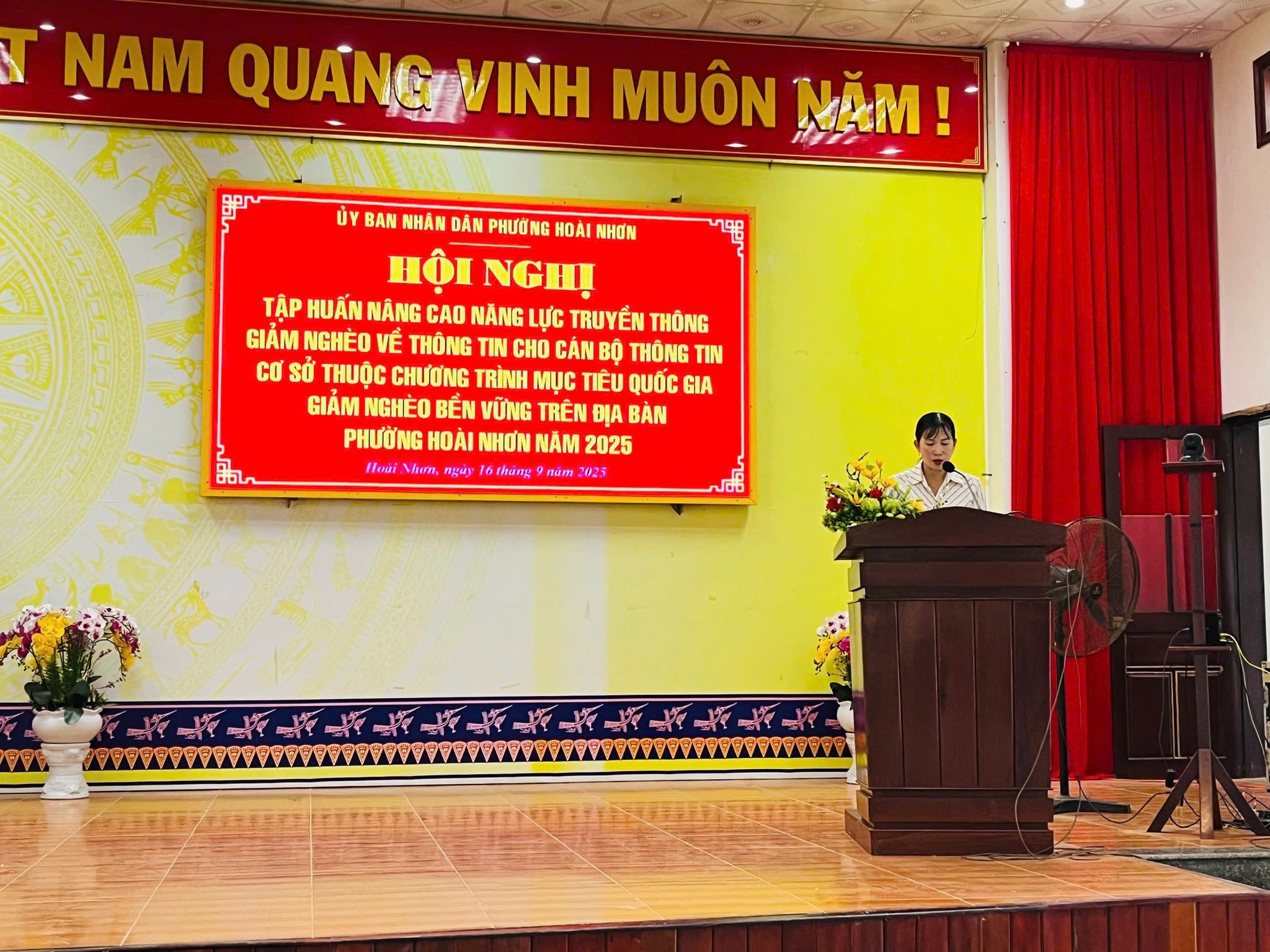 Ngày 16/9/2025, UBND phường Hoài Nhơn tổ chức Hội nghị Tập huấn nâng cao năng lực truyền thông giảm nghèo về thông tin năm 2025 dành cho đội ngũ tuyên truyền viên cơ sở.